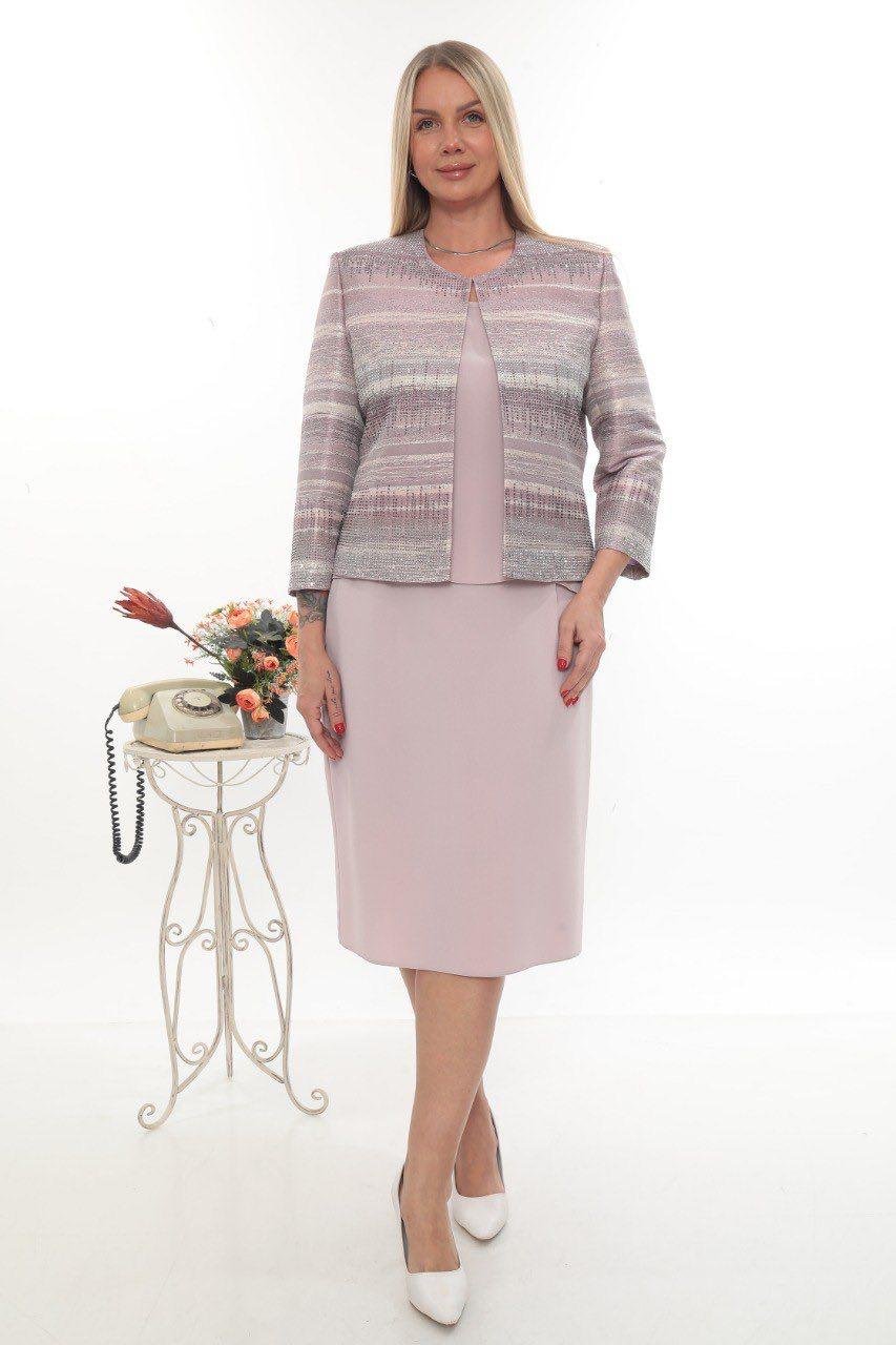 Ceketi Taş Detaylı Astarlı Jakarlı Ceket İçi Kolsuz Bluz Kısa Etekli Üçlü Takım (2501P)