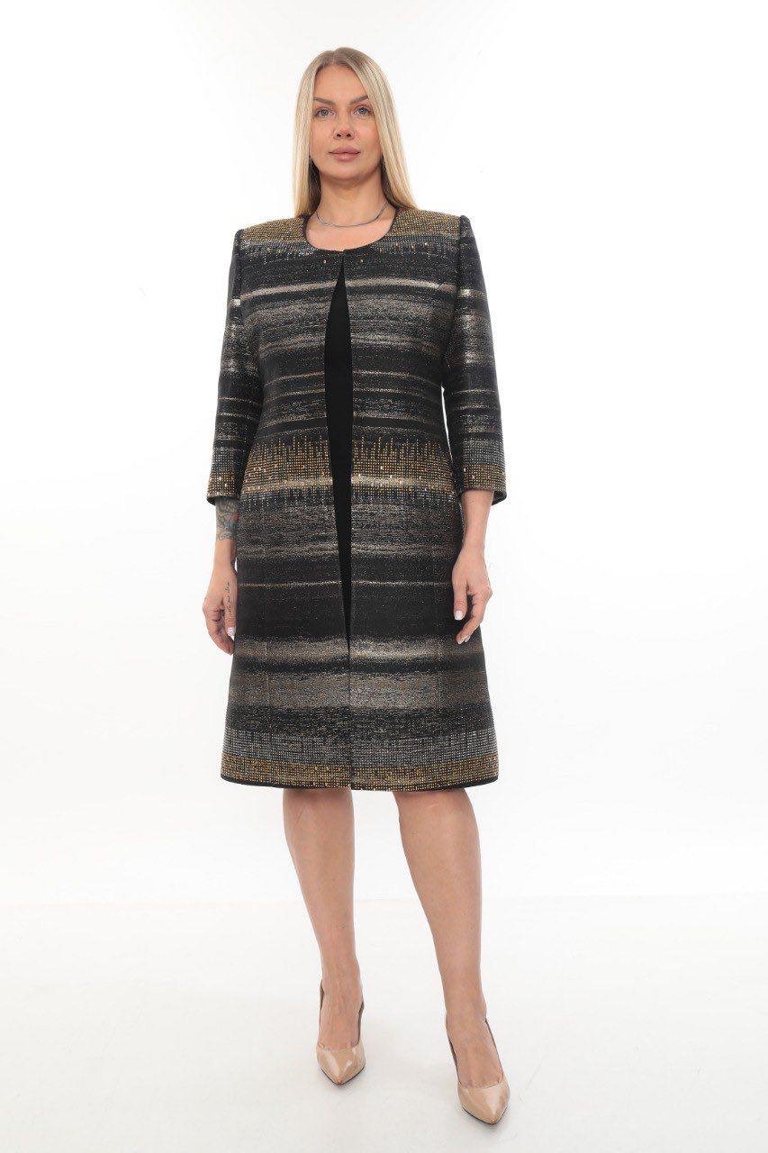 Ceketi Taş Detaylı Astarlı Jakarlı Ceket İçi Kolsuz Elbise İkili Takım (2502S)