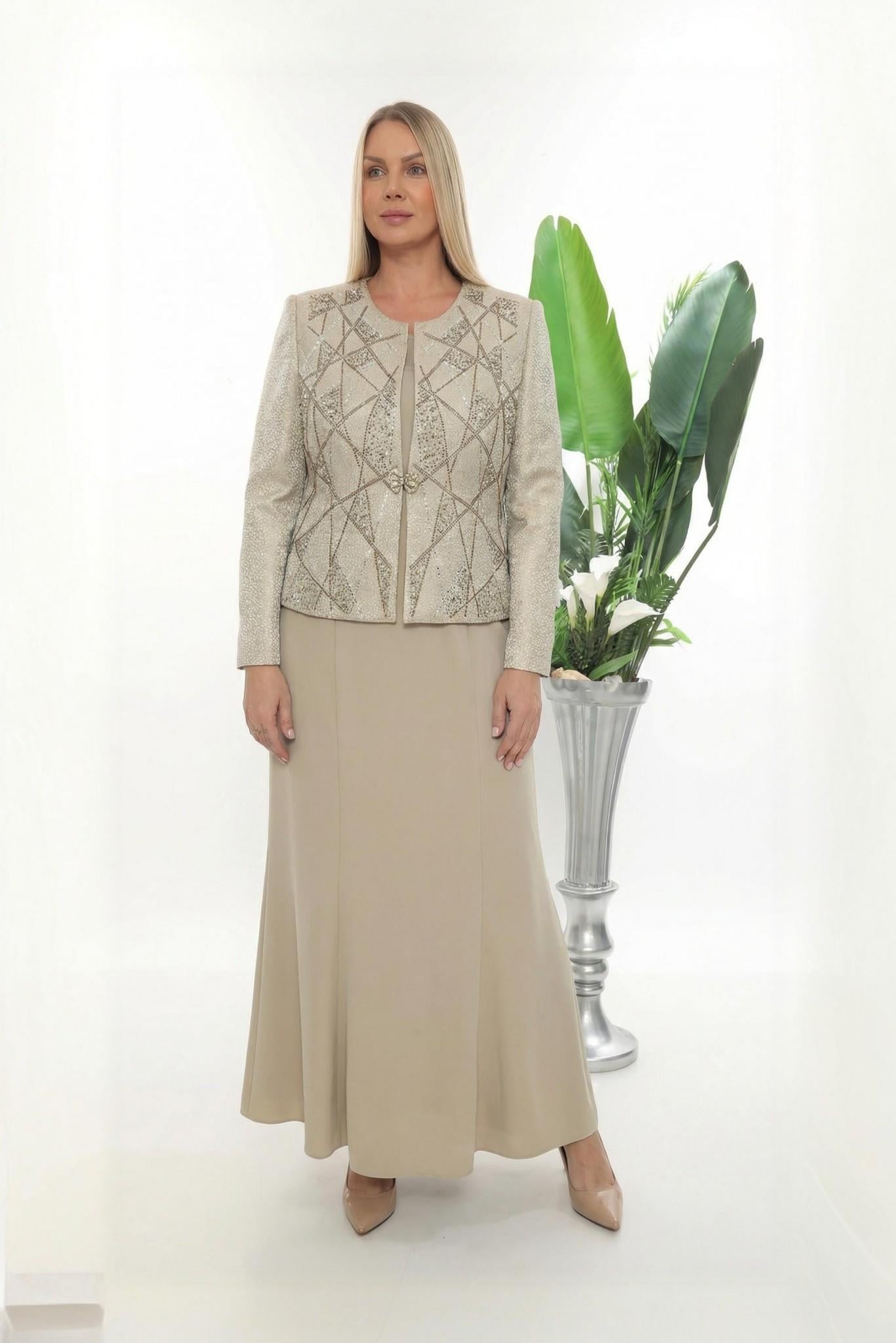 Ceket Taşlı Astarlı Yeşil Uzun Etekli Üçlü Takım (3220Y)