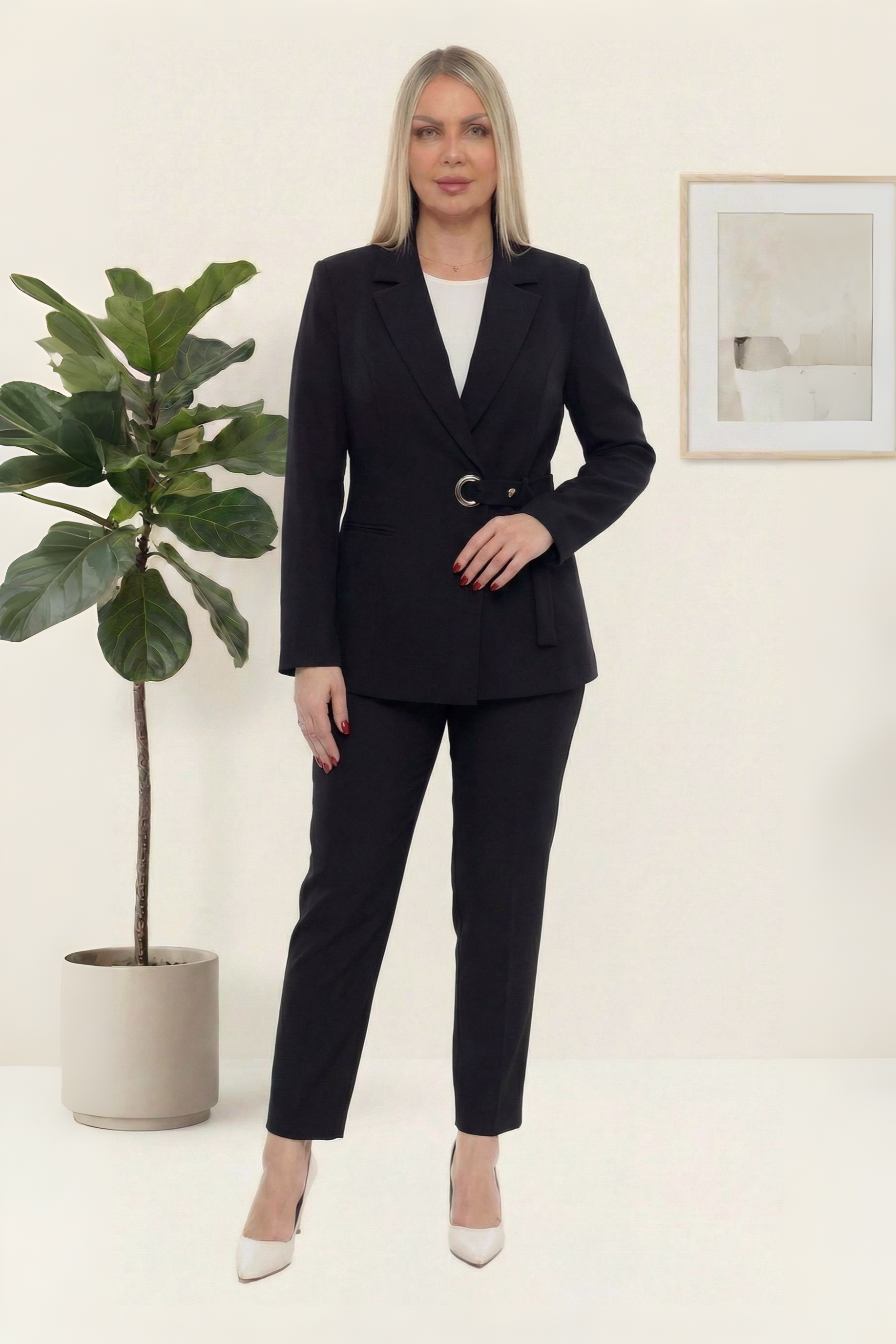 Kemar Detaylı Sade Siyah İkili Pantolonlu Takım (1034S)