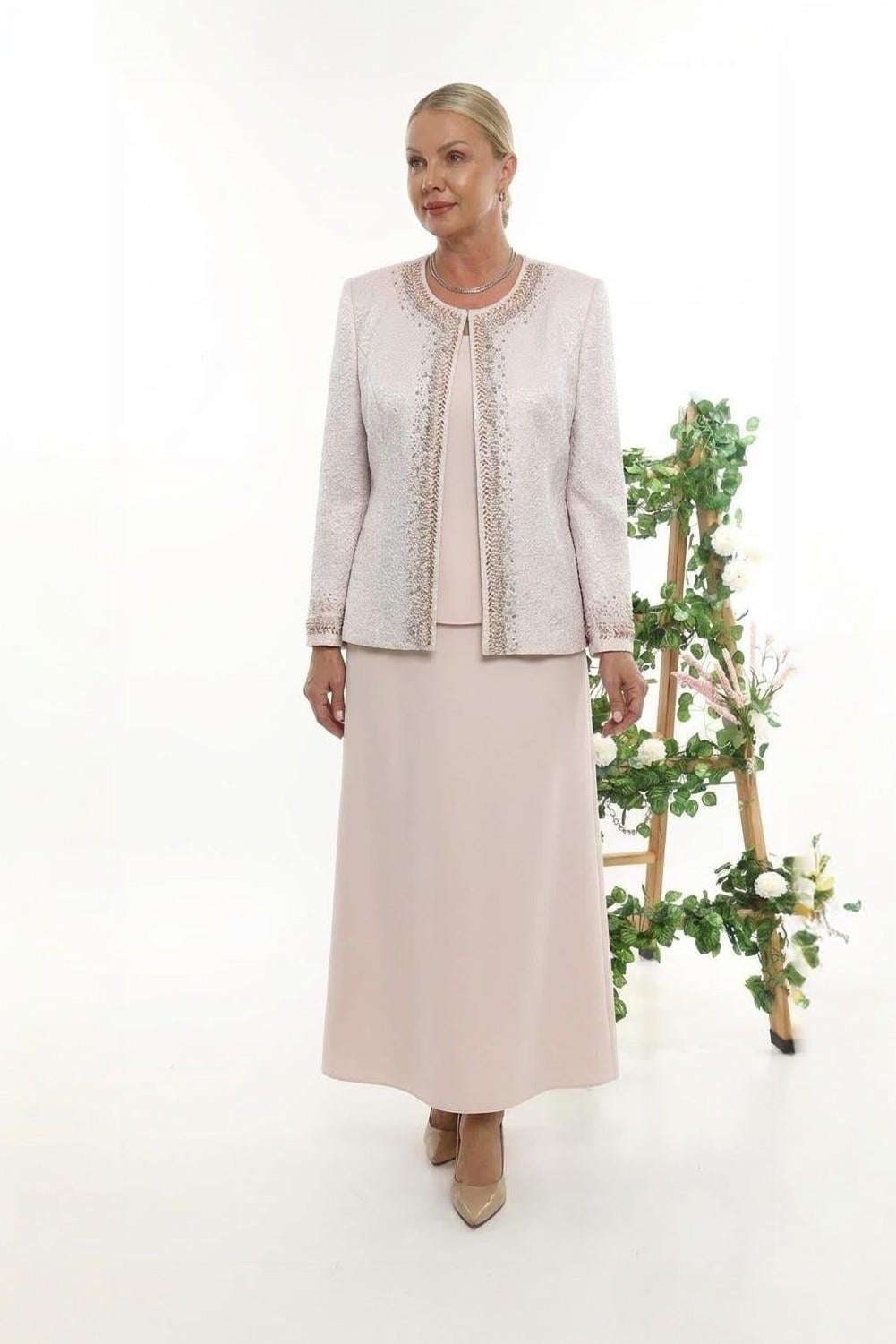Taşlı Astarlı Jakar Pudra Uzun Etekli Üçlü Takım (731P)